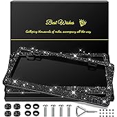 QUANQIUFEI 2 Pack Bling License Plate Frames for Women, Sparkly Rhinestone Diamond Car Accessories with Glitter Crystal Caps (Black)