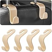 4PCS Car Seat Headrest Hooks, Auto Back Seat Hanger Holder, Durable Stylish Vehicle Organizer Universal Car Interior Accessories, Storage Hooks for Purses, Bags, Clothes, Coats, Hats (Beige/4PCS)